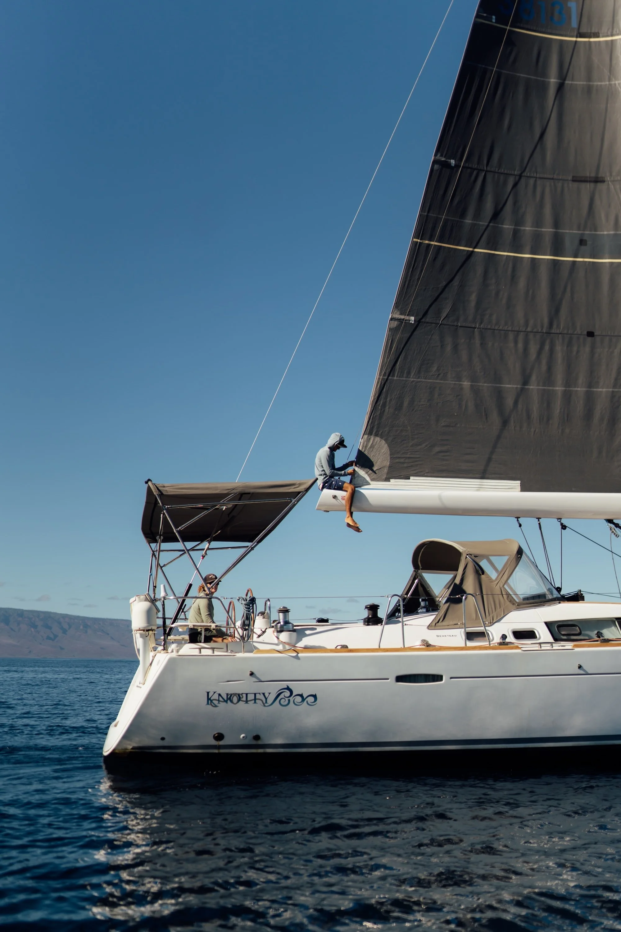 Sit back and relax aboard Knotty Boo, our Beneteau 50 sailing yacht, for Maui’s exclusive group sailing experience along the coast of West Maui.